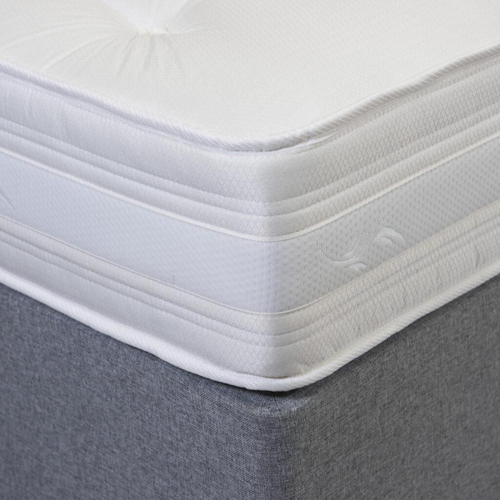 1000 Pocket unit with white fibre filling, foam encapsulated, hand tufted with silk fabric.